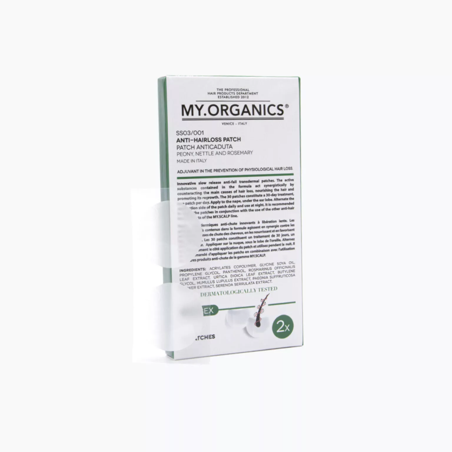 PLASTER ANTI-HAIRLOSS PATCH jest dostępny w opakowaniu 30 plastrów, co stanowi zapas na 30 dni. Wystarczy nałożyć jeden plaster na skórę głowy każdego dnia, a widoczne rezultaty pojawią się już po kilku tygodniach. Aby uzyskać najlepsze rezultaty, zaleca się stosowanie plastrów w połączeniu z innymi produktami przeciw wypadaniu włosów z linii MY.SCALP i przestrzeganie zalecanego protokołu stosowania.
